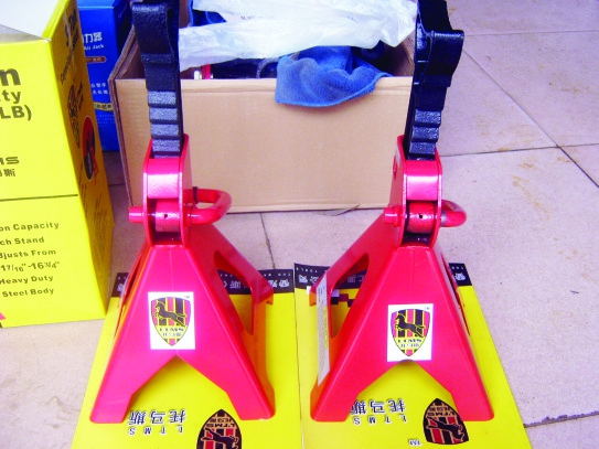 走訪過程中記者看到,千斤頂旁總會擺著一種紅色支架,“這是安全支架,又叫‘安全凳’,可以上下伸縮,配合千斤頂使用的,價格在百元左右。”銷售人員介紹。