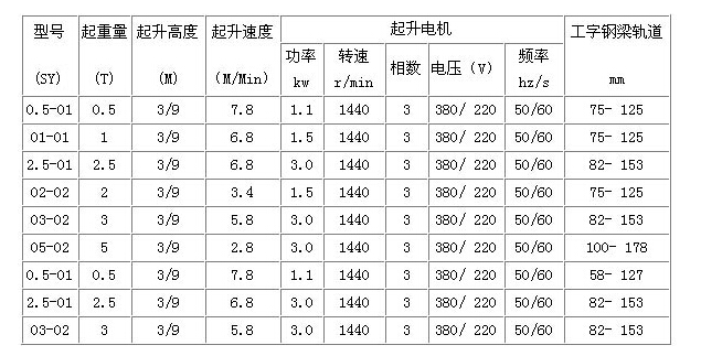 本產(chǎn)品SY型環(huán)鏈電動葫蘆起升高度?起升重量?請點擊>>技術(shù)參數(shù)
