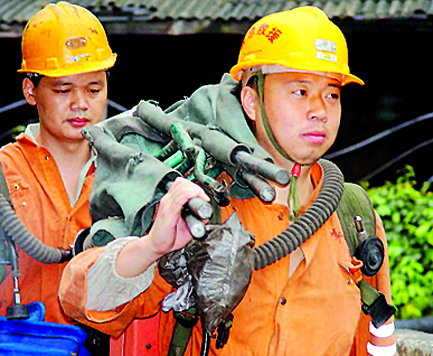 自四川汶川等地發(fā)生“5.12”強烈地震以來,江蘇啟江起重機械有限公司救護隊立即處于一級戰(zhàn)備。全體救護隊員們化悲痛為力量,不斷加強自身體能訓(xùn)練,強化礦山救援技術(shù)演練,以嫻熟的救援技藝,以飽滿的精神狀態(tài)時刻準備著,聽從調(diào)遣奔赴抗震救災(zāi)第一線。圖為救護隊員演練搶險救災(zāi)聞警出動。